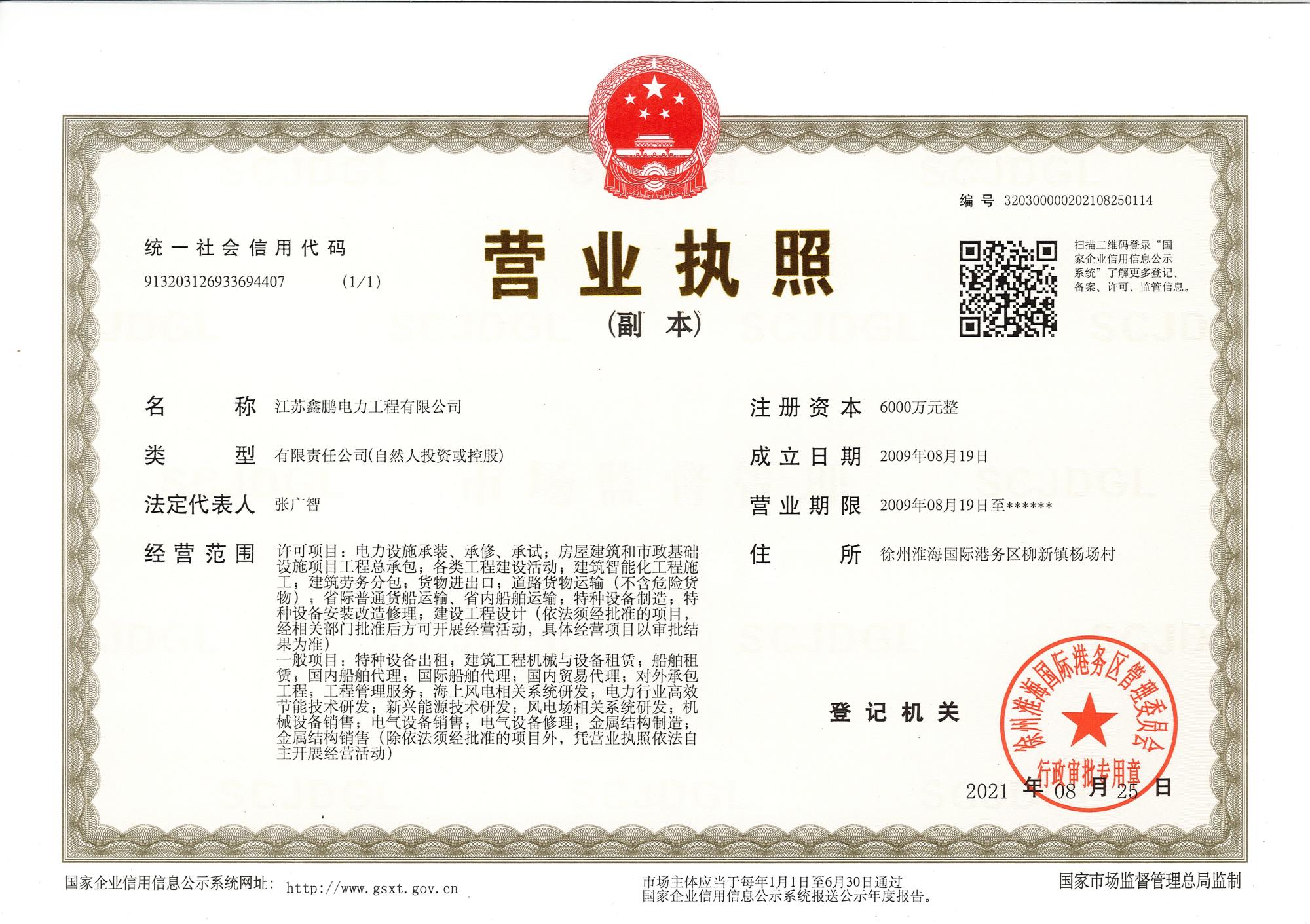 江蘇鑫鵬電力工程有限公司成立于2009年,位于素有“五省通衢”之稱(chēng)的“古彭”徐州。注冊(cè)資金6000萬(wàn)元,占地50畝。